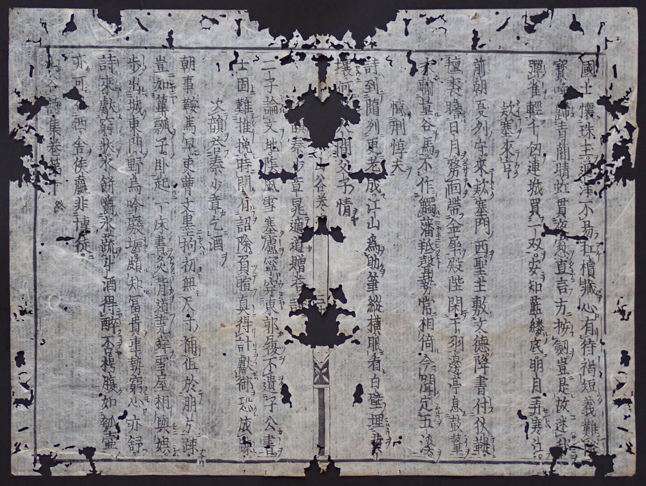 漉嵌め前の本紙(黒い箇所が虫損箇所)